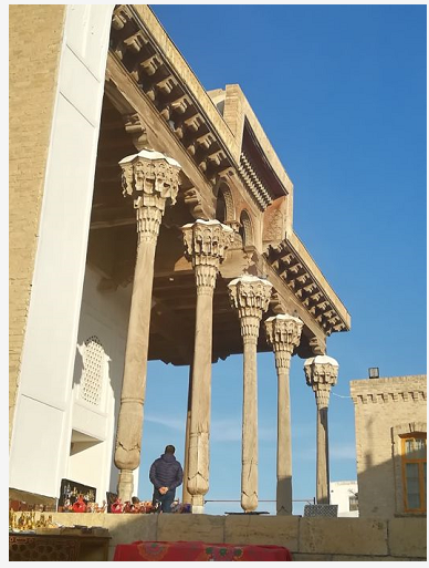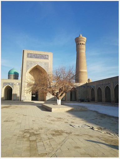 (背景為布哈拉城市象征——大宣禮塔)